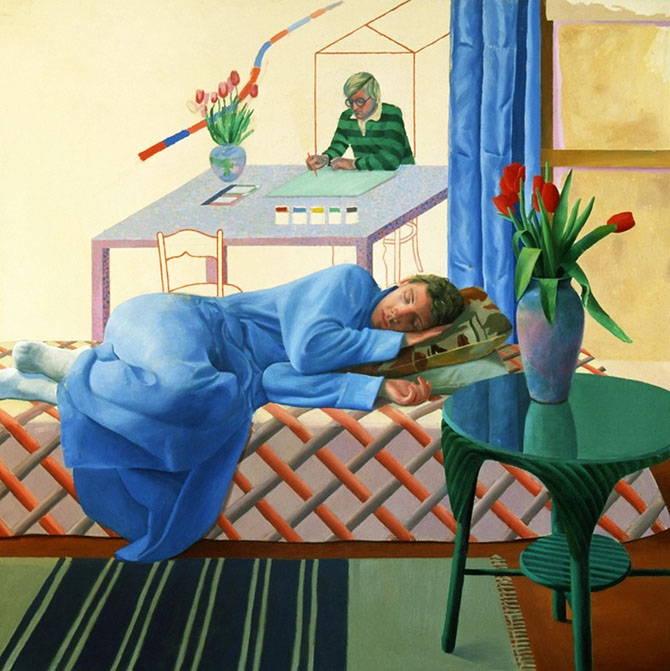 David Hockney (1937). Artist (Picasso) and Model, 1974. British Museum London.