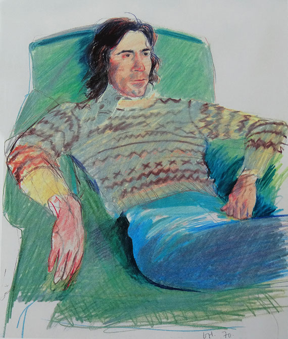 David Hockney (1937). Ossie Wearing a Fairisle Sweater, 1970. Fotografiert ab Postkarte.
