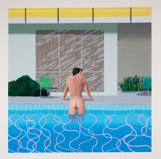 David Hockney (1937). Peter Getting out of Nicks Pool, 1966. Fotografiert ab Postkarte.