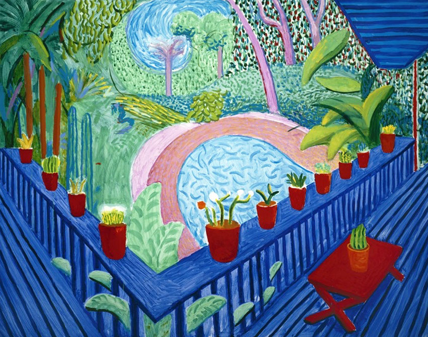 David Hockney (1937). Red Pots in the Garden, 2000. Fotografiert ab Postkarte.