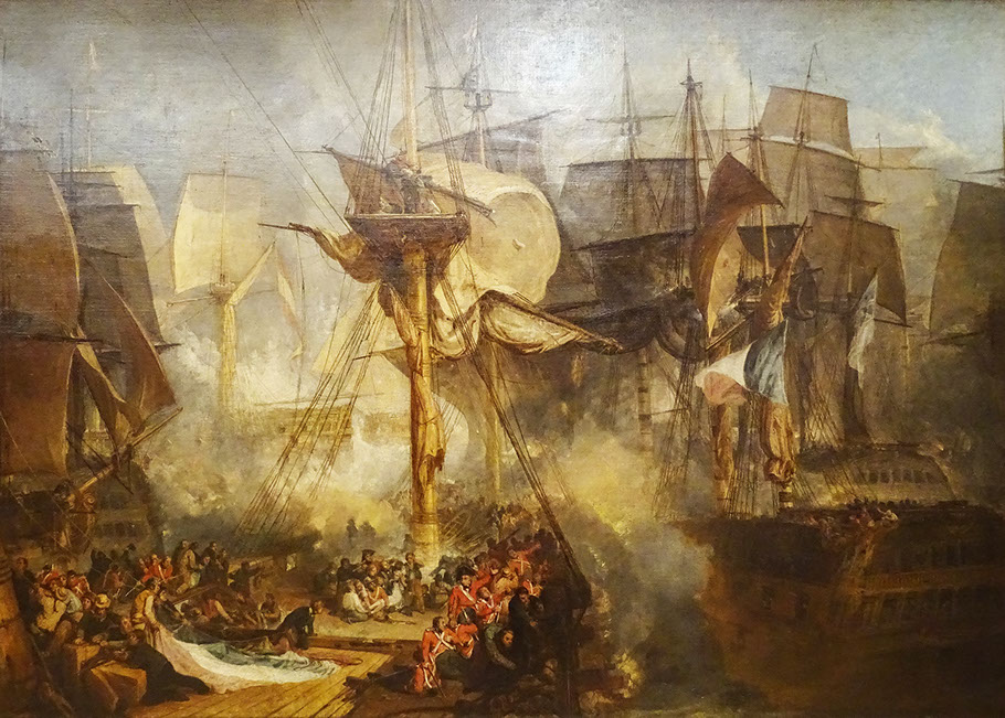 William Turner (1775-1851). Battle of Trafalgar, seen from the Mizen Starboard Shrouds of the Victory, 1806-08.