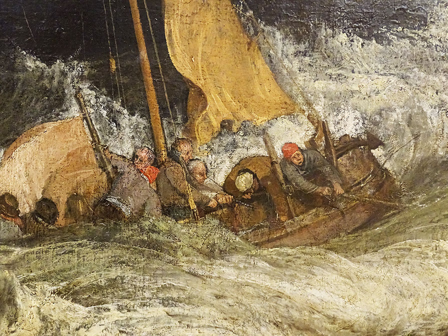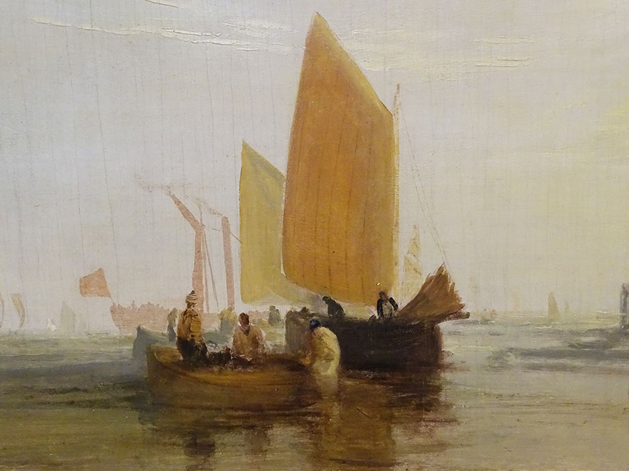 William Turner (1775-1851). Entrance to the Meuse, Orange-Merchant on the Bar, Going to Pieces, 1819. Detail.