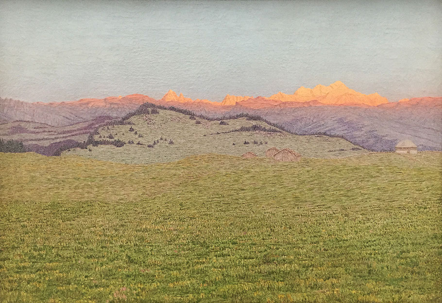 Alexandre Perrier (1862-1936). Hochebene mit Berghütten bei Sonnenaufgang, 1897. Kunstmuseum Solothurn.
