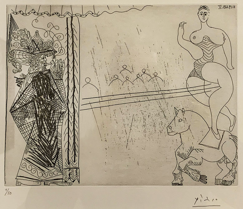 Pablo Picasso (1881-1973). Verkleideter Prahler in einem Zirkus, 1968. Kunstmuseum St. Gallen.