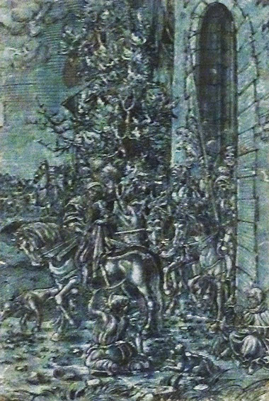 Lucas Cranach d.Ä. (1472-1553). Der hl. Martin mit dem Bettler, 1504. 2. Staatliche Graphische Sammlung München.