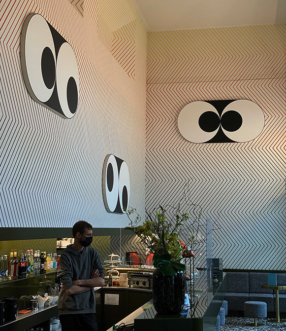 Claudia Comte (1983). Museumscafé 2022: Wand Easy Heavy II und Eye to Eye 2013. Haus Konstruktiv Zürich.
