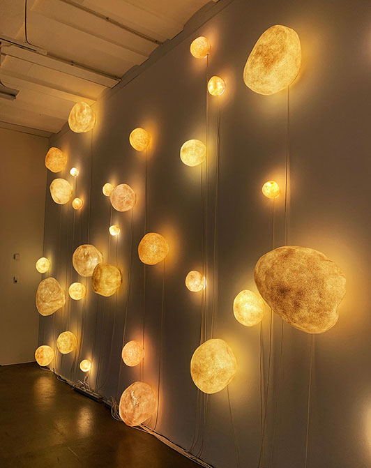 John Armleder (1948). Kunststoffleuchten in Steinoptik, 2004. Massimodecarlo.