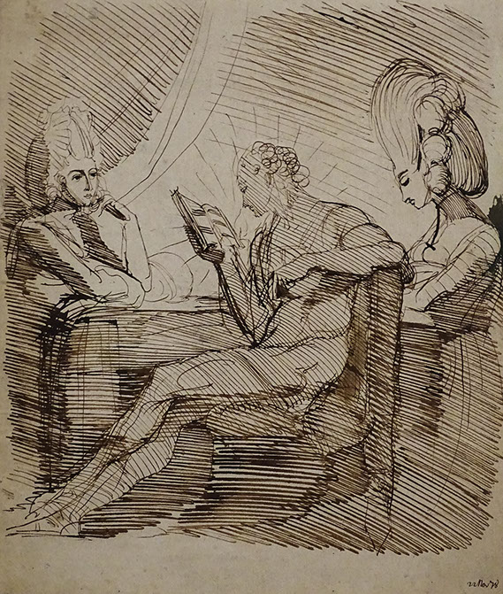 Johann Heinrich Füssli (1741-1825). Füssli, den Schwestern Hess vorlesend 1778. Kunsthaus Zürich.