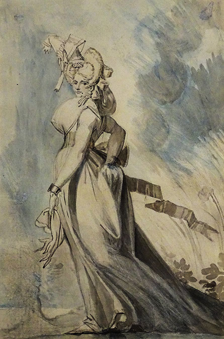 Johann Heinrich Füssli (1741-1825). Promenierende Dame mit Fächer in Rückansicht, 1791. Auckland Art Gallery.