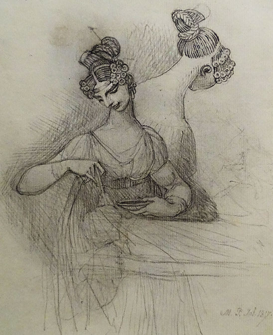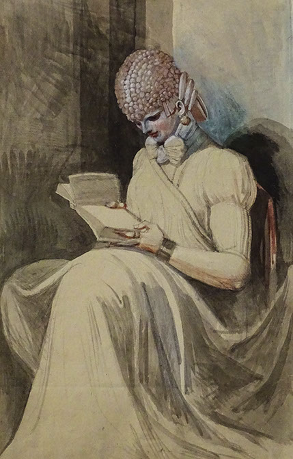 Johann Heinrich Füssli (1741-1825). Lesende Frau (Sophia Füssli?) mit Lockenfrisur, 1796. Detail. Kunsthaus Zürich.