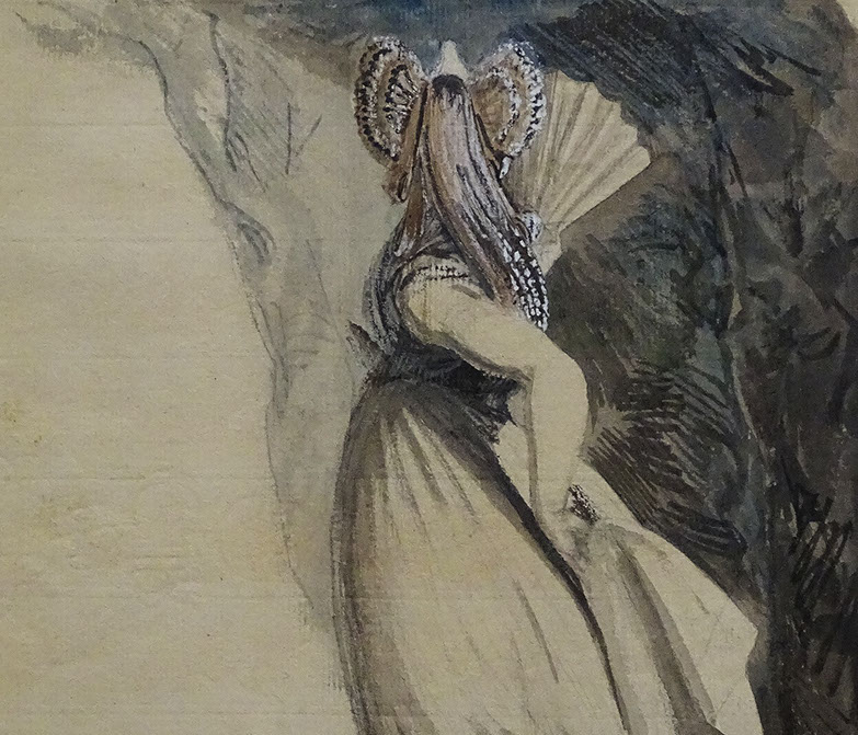 Johann Heinrich Füssli (1741-1825). Promenierende Dame mit Fächer, 1791. Detail. Auckland Art Gallery.