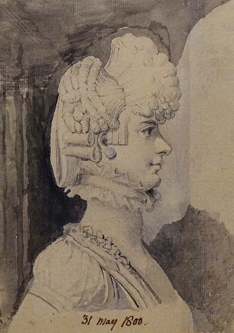 Johann Heinrich Füssli (1741-1825). Sophia Füssli mit kunstvoll geflochtenem Kopfputz, 1795. Auckland Art Gallery.