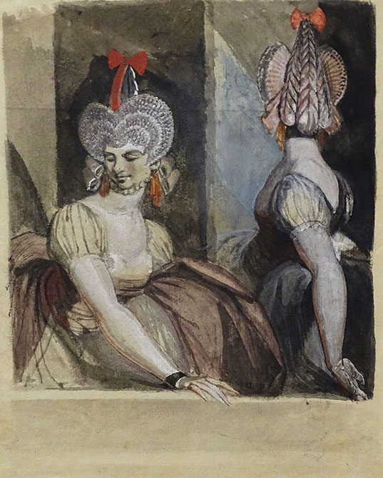 Johann Heinrich Füssli (1741-1825). Zwei Kurtisanen an einem Frisiertisch, 1805-06. Detail. Privatsammlung.
