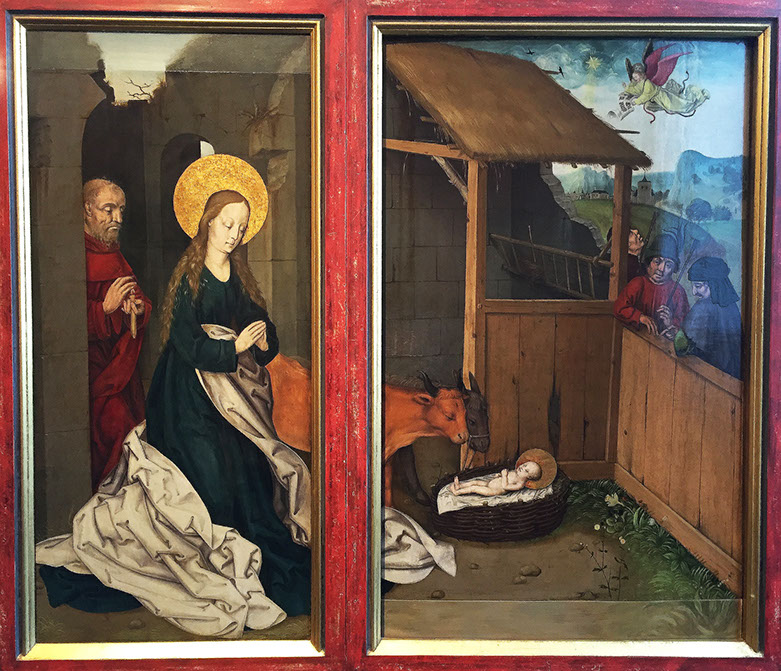 Paul Löwensprung, der ältere Berner Nelkenmeister (1460-1499). Geburt Christi, um 1490. Detail.