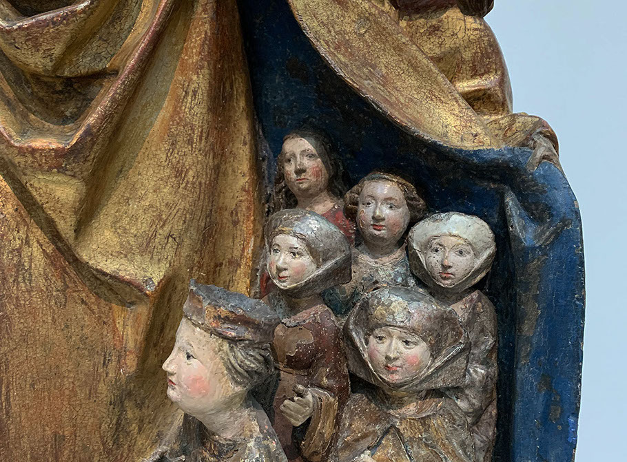 Schutzmantelmadonna. Künstler unbekannt, um 1500, Oberschwaben. Detail. Sammlung Bührle, Kunsthaus Zürich.