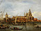 Francesco Guardi (1712-1793). L'isola della Giudecca con le chiese delle Zitelle e del redentore, 1780.