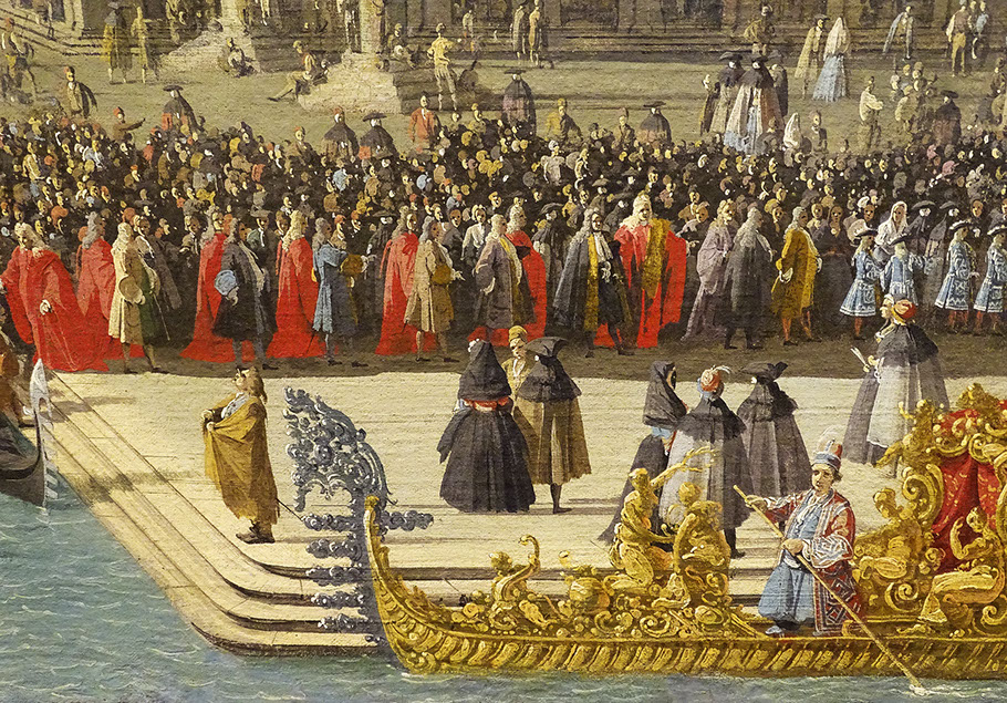 Giovanni Antonio Canaletto (1697-1768). Empfang eines Botschafters vor dem Dogenpalast, 1730. Detail.