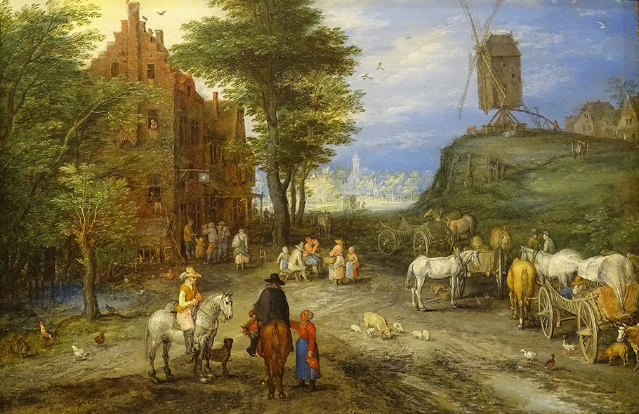 1611-Jan Brueghel (1568-1625). Landstrasse mit Reisenden und Wirtshaus, 1611. Kunsthaus Zürich.