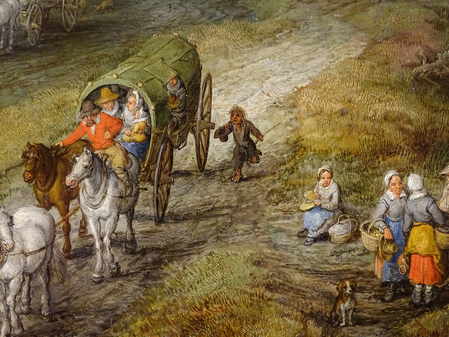 1611-Jan Brueghel (1568-1625). Landstrasse mit Reisenden und Wirtshaus, 1611. Detail. Kunsthaus Zürich.