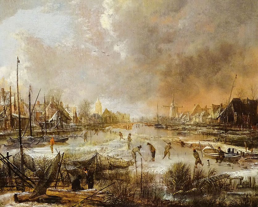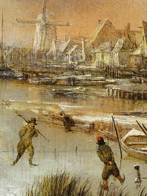 1660-Aert van der Neer (1603-1677). Winterlandschaft mit Feuersbrunst, 1660. Detail. Kunsthaus Zürich.