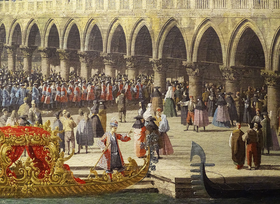 1730-Canaletto (1697-1768). Empfang des Botschafters vor dem Dogenpalast, 1730. Detail. Kunsthaus Zürich.