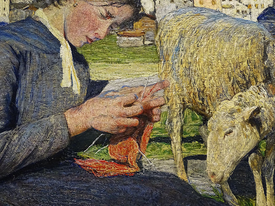 1888-Giovanni Segantini (1858-1899). Ragazza che fa la calza, 1888. Detail. Kunsthaus Zürich.