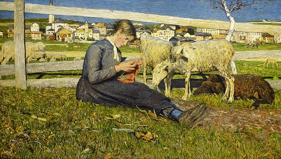 1888-Giovanni Segantini (1858-1899). Ragazza che fa la calza, 1888. Kunsthaus Zürich.