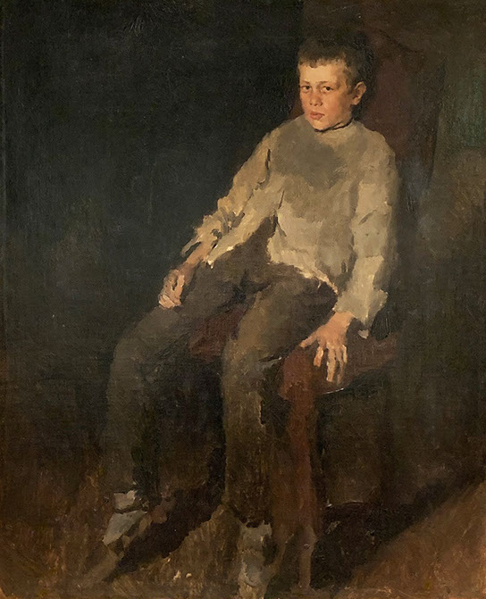 Wilhelm Leibl (1844-1900). Bauernjunge auf einem Stuhl, 1875. Nationalgalerie Berlin.