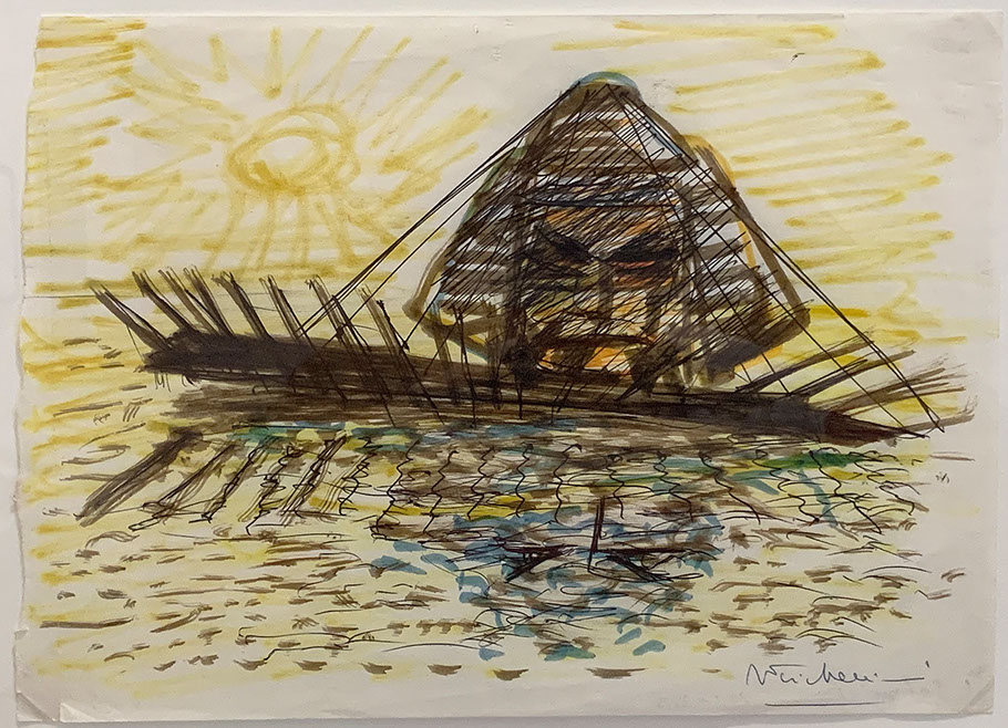 1972-Federico Fellini (1920-1993). Das Schiff «Rex», 1972. Für Amarcord. Sammlung Jakob und Philipp Keel.