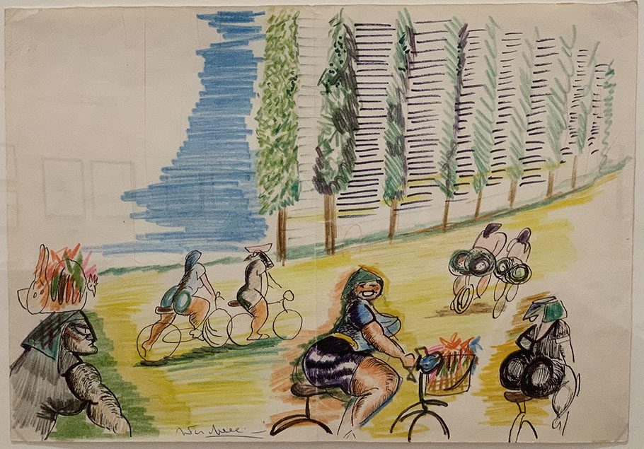 1980-Federico Fellini (1920-1993). Il canneto e la motociclista, 1979. Für Città delle Donne. Sammlung J. und P. Keel.