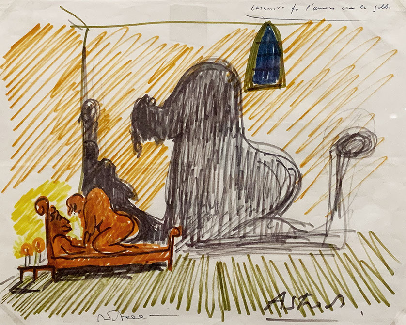 1975-Federico Fellini (1920-1993). Casanova fa l'amore con la gobba, 1975. Für Il Casanova. Sammlung J. und P. Keel.