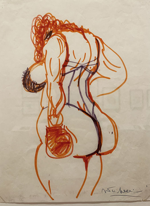 1980-Federico Fellini (1920-1993). Studie Boxerin, 1979. Für Città delle Donne. Sammlung Jakob und Philipp Keel.