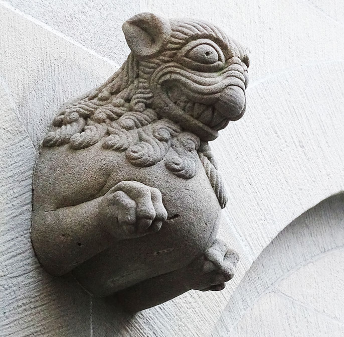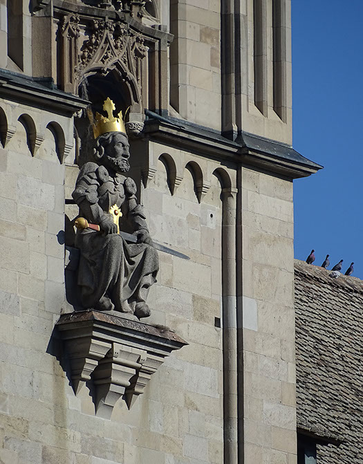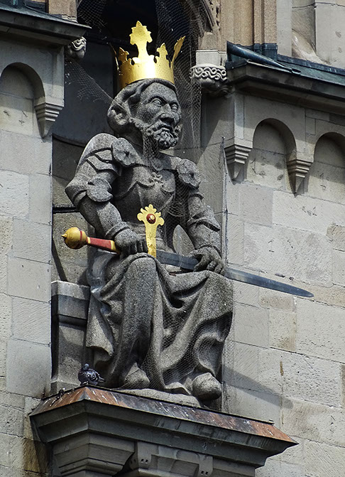 Original-Statue Karls des Grossen in der Krypta. Kopie davon am Südturm von Otto Münch (1885-1965).