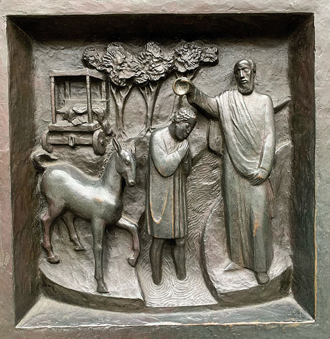 Detail der Bronzetüre: Ruth aus dem Alten Testament.