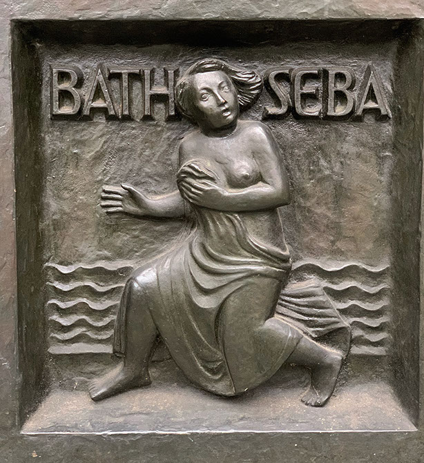 Detail der Bronzetüre: Bathseba im Bade (Altes Testament).
