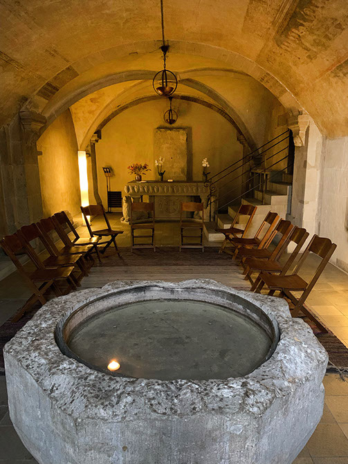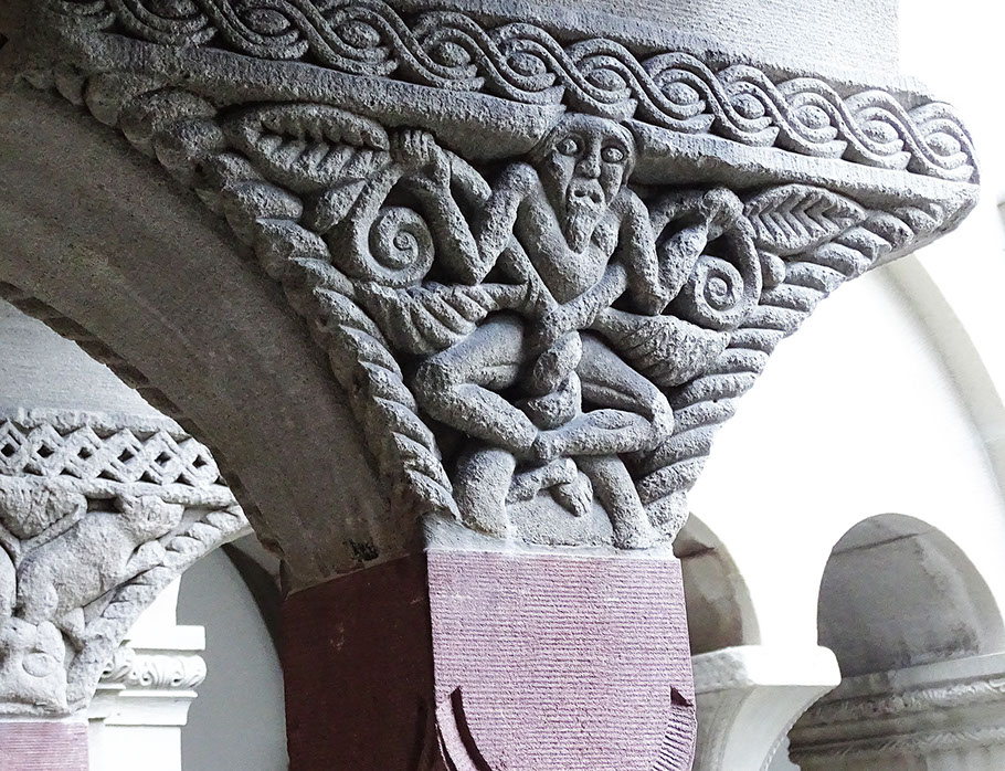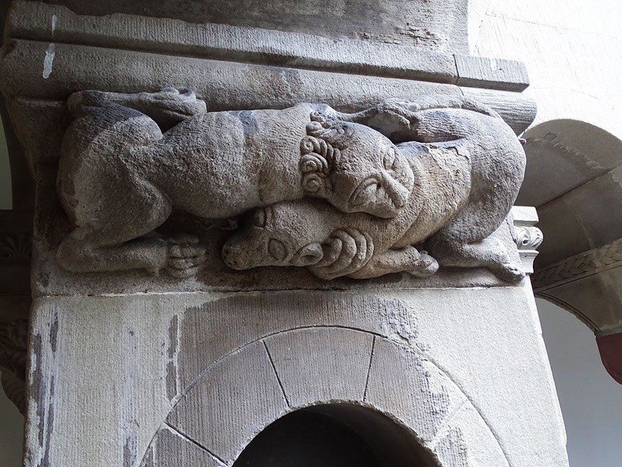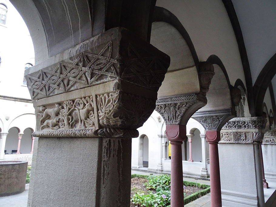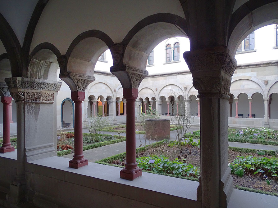 Die Krypta mit der Original-Statue Karls des Grossen. Kopie davon am Südturm von Otto Münch (1885-1965).