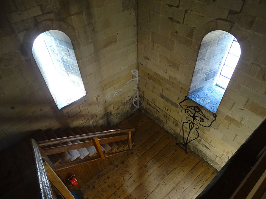 Im Karlsturm. Wandsprayereien von Harald Naegeli.