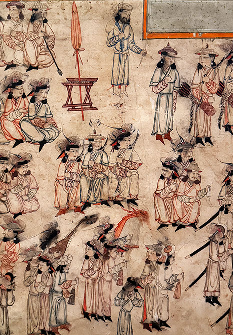Inthronisation eines Herrschers zur Mongolenzeit, 14.Jht. Detail. Staatsbibiliothek zu Berlin.