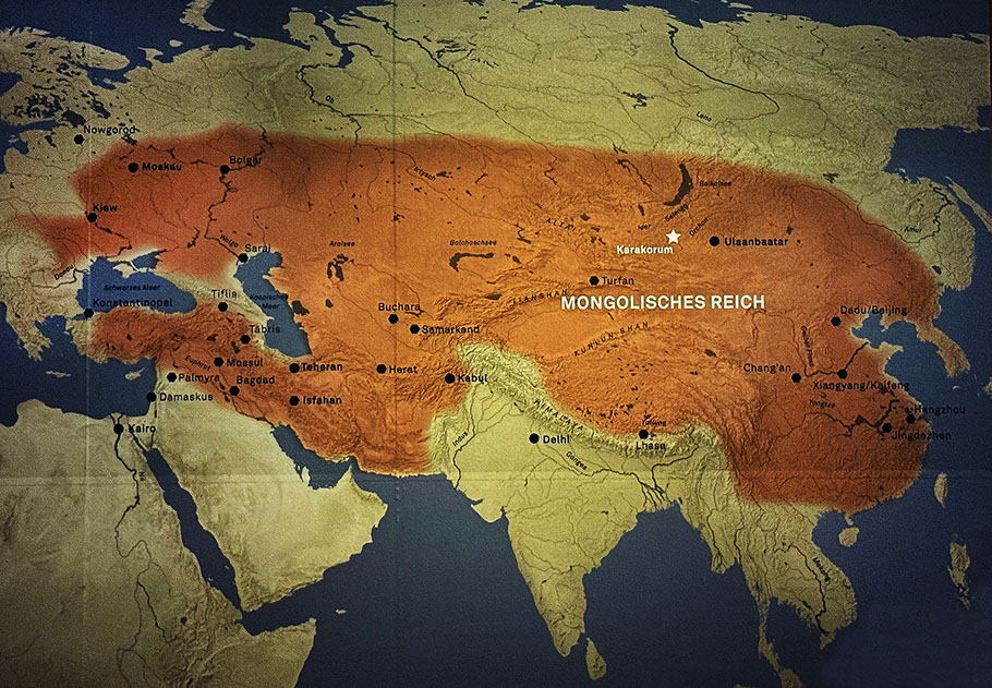 Das Mongolische Superreich im 13. Jahrhundert unter Kublai Khan. Fläche 26 Mio Quadratkilometer.