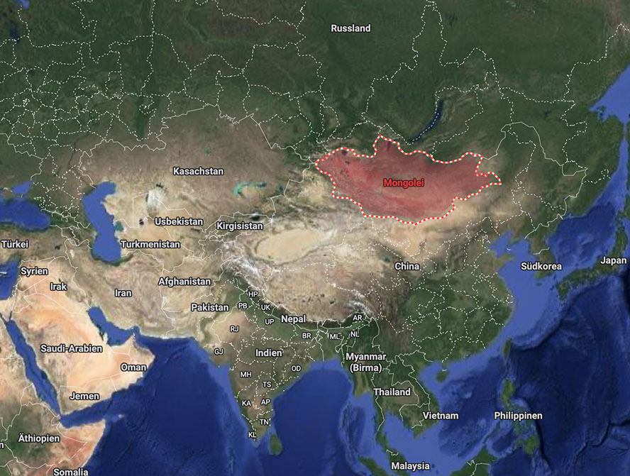 Die heutige Mongolei. Google Maps.