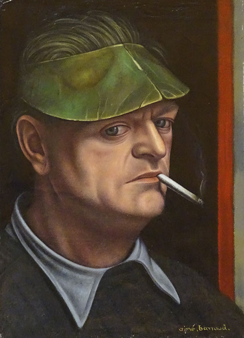 Aimé Barraud (1902-1954). Selbstbildnis mit Zigarette und Sonnenschild, ohne Datum. Sammlung Werner Coninx.