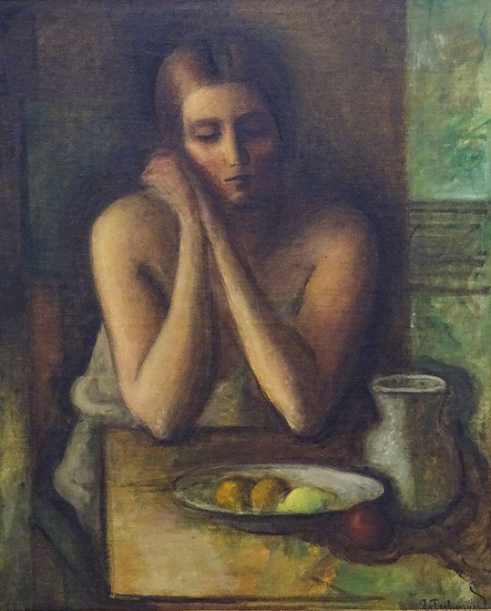 Johann von Tscharner (1886-1946). Sitzende am Tisch mit Obst und Krug, 1928. Sammlung Werner Coninx.