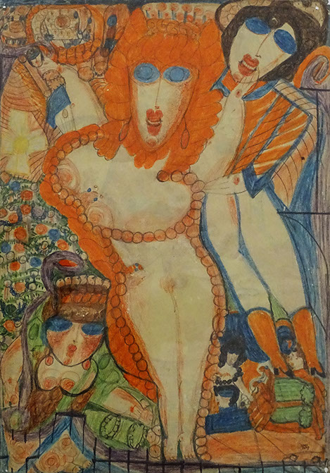 Aloïse Corbaz (1886-1964). Elvire et Lamartine Périer en gondole, 1953. Collection de l'Art Brut, Lausanne.
