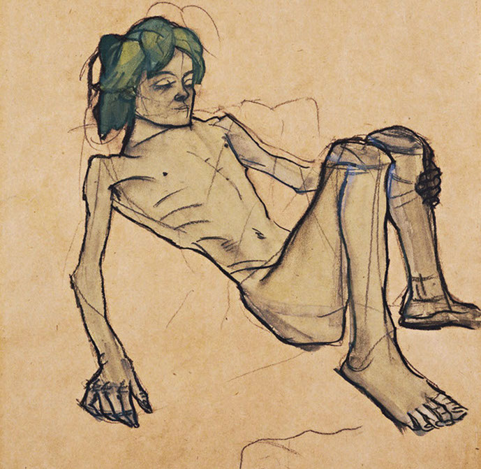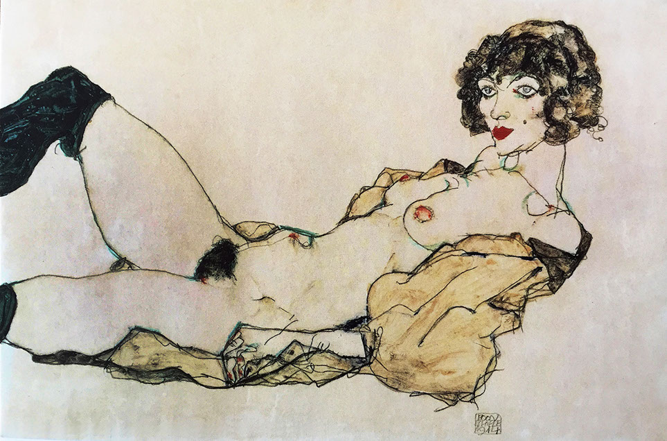 1914-Egon Schiele (1890-1918). Liegender Akt mit grünen Strümpfen, 1914. Exp. Vienna 1900. Musée Cantonal Lausanne.