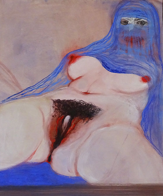 2017-Miriam Cahn (1949). Le milieu du monde schaut zurück, 2017-18. Ausstellung Kunstmuseum Bern 2019.
