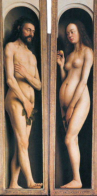 1432-Jan van Eyck (1390-1441). Genter-Altar, 1432-35. Adam und Eva. Sankt Bavo Kathedrale, Gent.