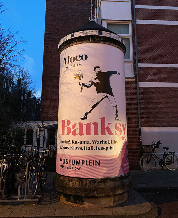 Werbung für Moco Museum und Banksy in Amsterdam.