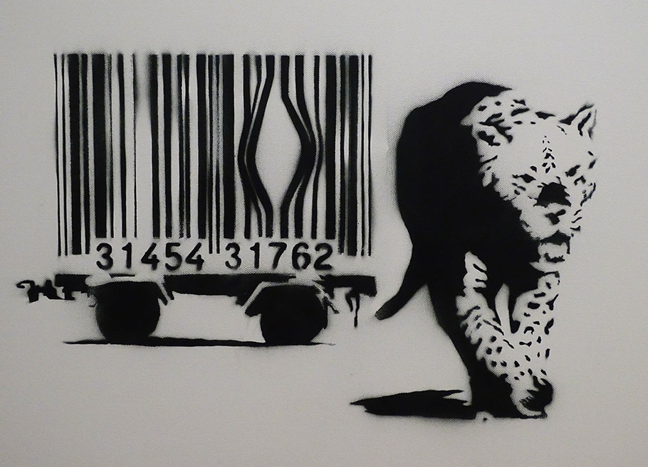 Banksy (1974?). Barcode Leopard, 2002. Moco Museum Amsterdam.