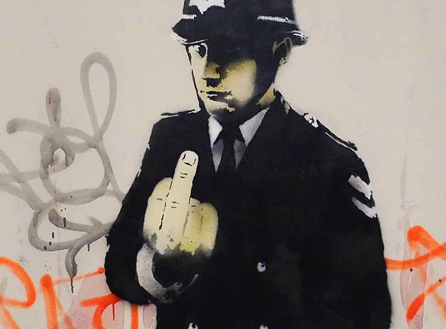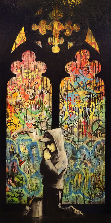 Banksy (1974?). Forgive us for our Trespassing, 2010. Detail. Private Collection. Moco Museum Amsterdam.