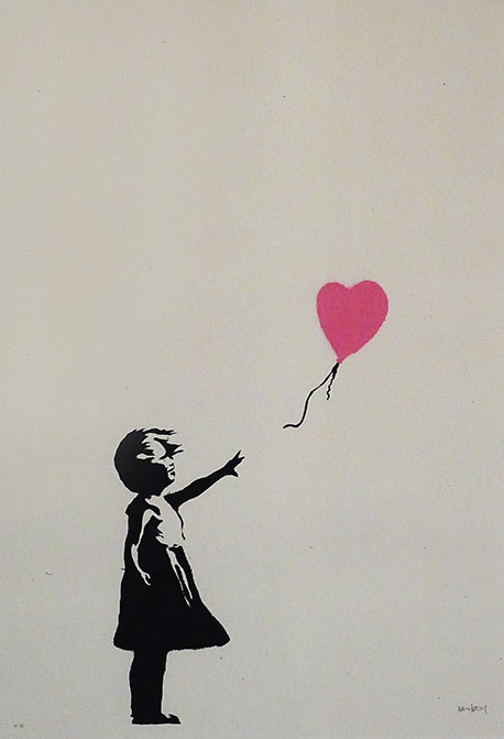 Banksy (1974?). Girl with Balloon Pink signed AP. 2002. «There is always hope».